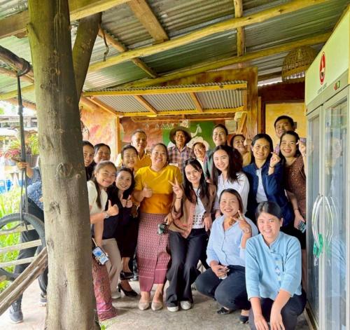 ในภาคบ่ายได้ลงพื้นที่ Best practice งานพัฒนาชุมชนอำเภอจอมพระร่วมกับพัฒนาการอำเภอทั้ง 5 อำเภอ พร้อมนักวิชาการ นปร. และพัฒนากรประจำโซนเหนือ ณ แซตอม ออร์แกนิค ฟาร์ม ตำบลเมืองลีง อำเภอจอมพระ จังหวัดสุรินทร์ ซึ่งวิสาหกิจชุมชนแซตอมออร์แกนิคฟาร์มสุรินทร์ เป็นวิสาหกิจชุมชนที่ได้รับรางวัลชนะเลิศสุดยอดผลิตภัณฑ์ OTOP เด่น (Provincial Star OTOP: PSO) จังหวัดสุรินทร์ ประเภท เครื่องดื่ม โดยได้รับฟังการบรรยายโดยละเอียดจากนายสุแทน สุขจิตร ประธานกลุ่มวิสาหกิจฯ และได้เยี่ยมชมฟาร์มข้าวอินทรีย์พันธุ์ข้าวพื้นเมืองจังหวัดสุรินทร์